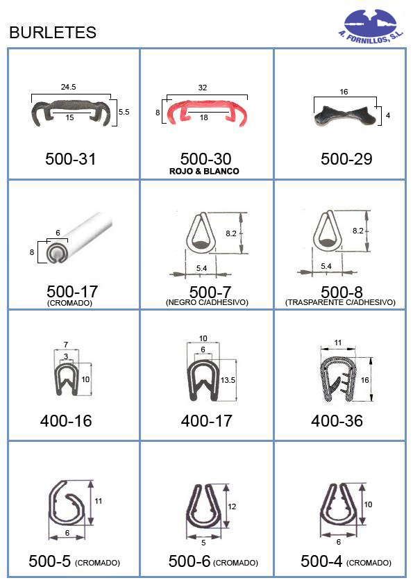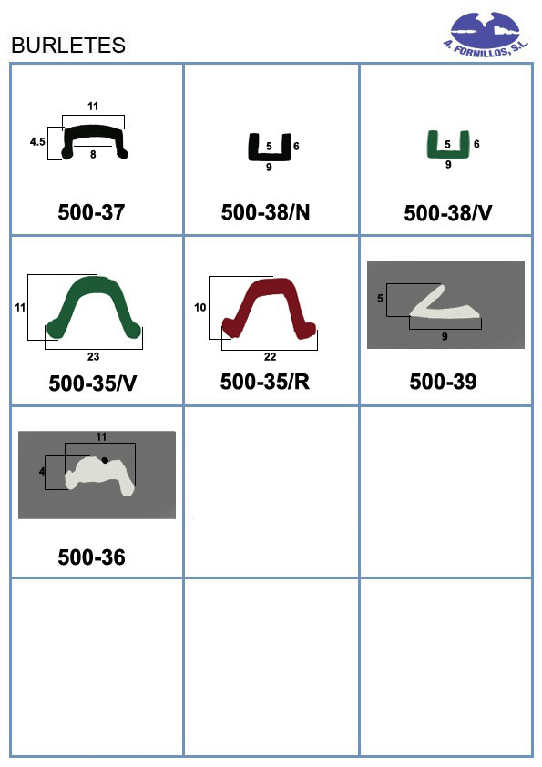 Disponemos del mas amplio catalogo de perfiles de goma, juntas de parabrisas, luneta, puerta, maletero, guía de acristalamiento, cejillas, molduras de aluminio y latón, manecillas, basculas etc.