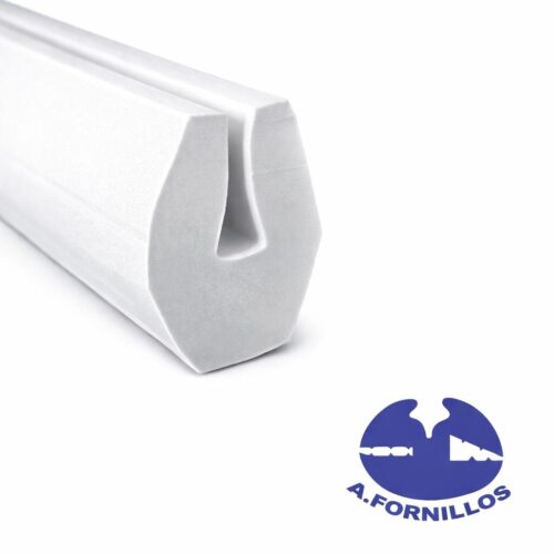 Perfil de goma EPDM en forma de U color blanco.